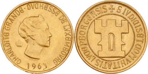 20 Frank 1963 - bez označení nominálu - na 1000 let města Lucemburku, KM.E64 (Au900), 6.463g, nep.hr., nep.rysky, pěkná patina, téměř RR!