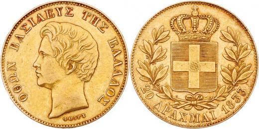 20 Drachma 1833, KM.21 (Au900, pouze 18.000 ks), 5.744g, nep.hr., nep.rysky, pěkná patina RR!