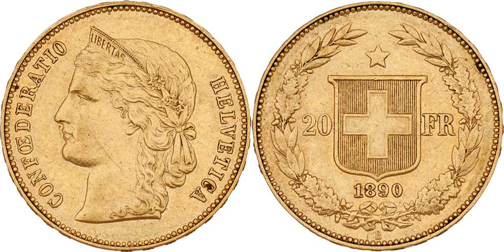 20 Frank 1890 B, KM.31.3 (Au900), 6.446g, nep.hr., nep.rysky, téměř