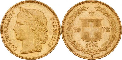 20 Frank 1895 B, KM.31.3 (Au900), 6.445g, nep.hr., nep.rysky, pěkná patina, téměř