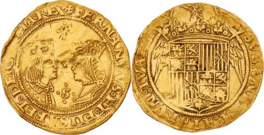2 Excelentes b.l. (cca 1497), Sevilla, Cayon.2927-28, Fr.129, 7.004g, mírně zvlněný, patina, téměř R!