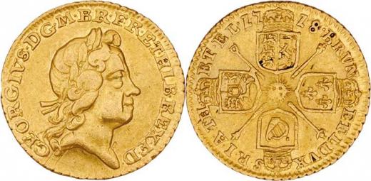 1/4 Guinea 1718, KM.555, Se.3638, 2.029g, dr.rysky, pěkná patina R!