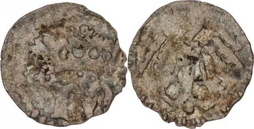 Denárový haléř b.l. (1375 - 1391), iniciály "IO" pod korunou / šachovaná orlice, SNS1.tab.XIX/345, 0.340g, exc., nep.nedor., pěkná patina RR!