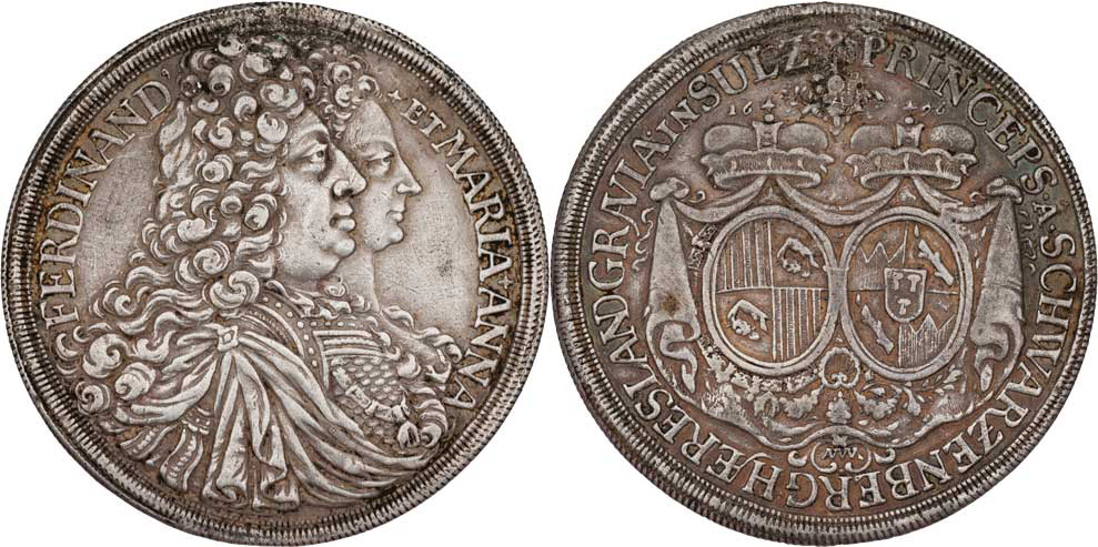 Tolar 1696 MM - na spoluvládu, Vídeň-Mittermayer, Dvojportrét zprava, opis / dva korunované znaky, květiny a opis, 29.264g, Don.3868, nep.stopa po oušku