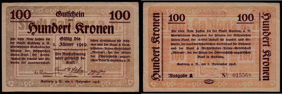 Gablonz (Jablonec n.N) - 100 Koruna 1918, D-H.49/2.2b