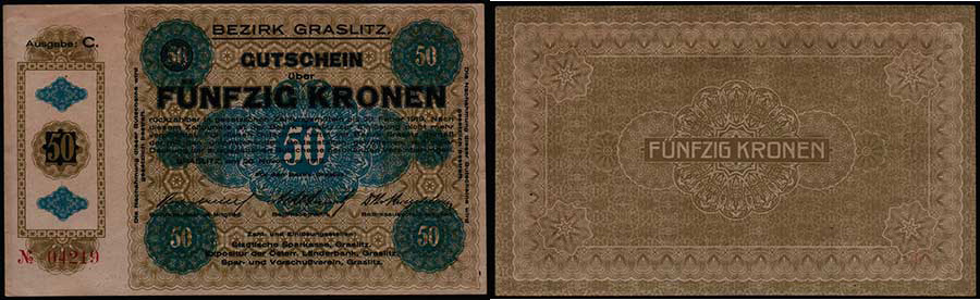 Graslitz (Kraslice), 50 Koruna 1918, D-H.54/1.3a