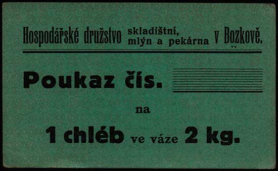 Bozkov - Hospodářské družstvo - poukázka na chléb 2kg - číslo nevyplněno (cca 1935)