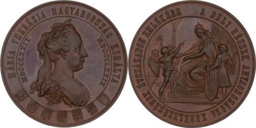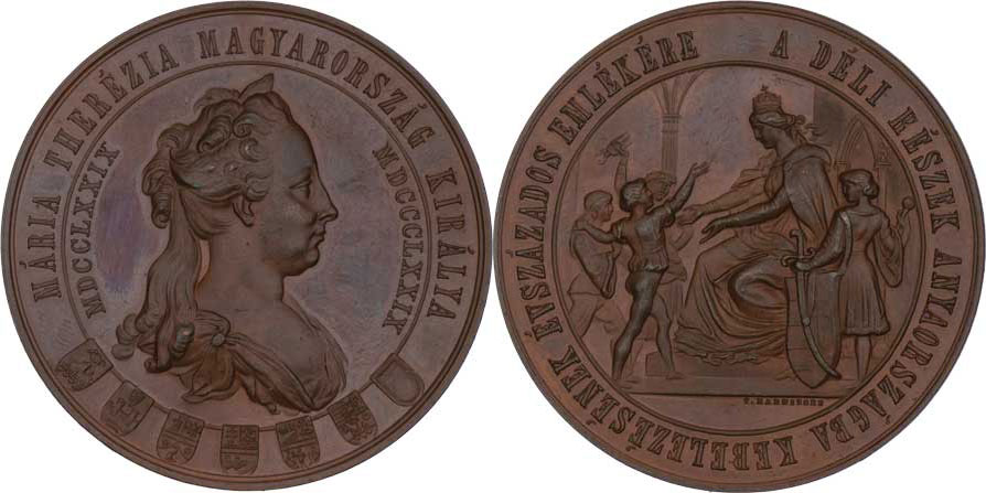 Radnitzky - 100 let sjednocení Dolních Uher 1879 - poprsí zprava, opisy/ Hungaria vítá děti (představují nová území), opis, Sign., bronz 52 mm, H.3820(Ag)