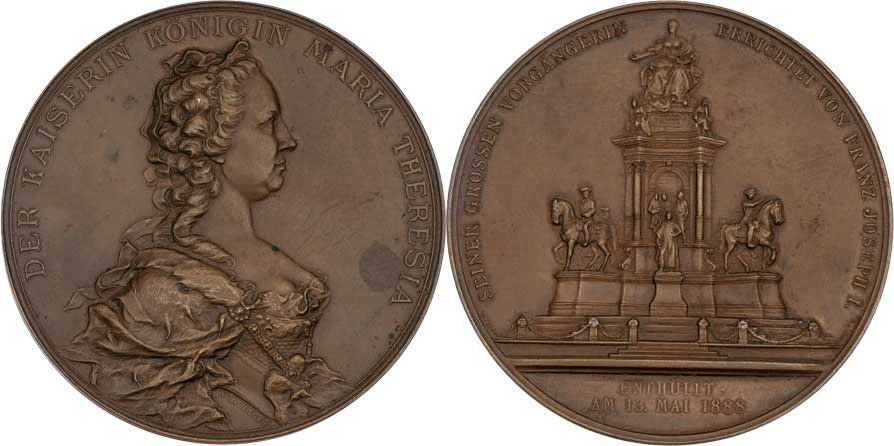 Scharff - medaile na odhalení pomníku ve Vídni 1888 - poprsí zprava, opis / pomník císařovny, opis a nápis, Sign., bronz 64 mm, H.3834(Ag), pěkná patina, téměř