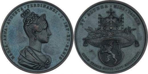 Boehm - AE medaile na korunovaci v Praze 1836 - korunov.portrét zprava, opis / korunovační klenoty na podušce, znak, opis, 47 mm, ČS.1497, P.III/6, pat.