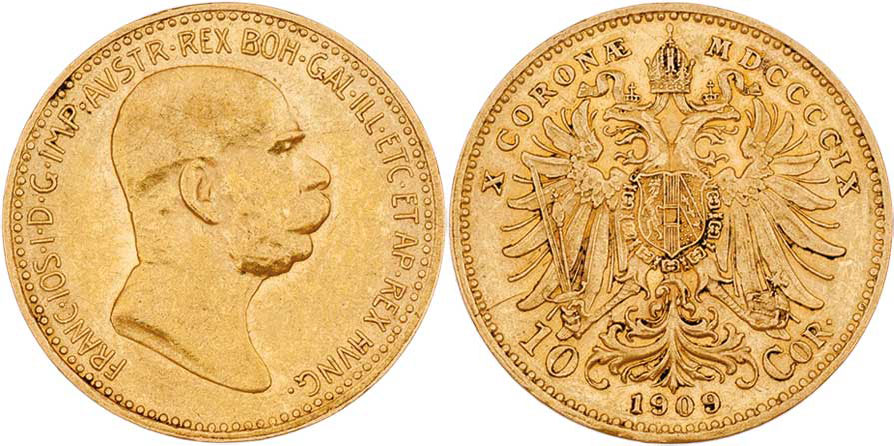 10 Koruna 1909 - Marschall, 3.375g, nep.hr., nep.rysky, téměř
