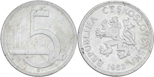 5 Koruna 1952 - nevydaná - původní ražba, 1.705g, nepatrné vady materiálu, patina, téměř R!