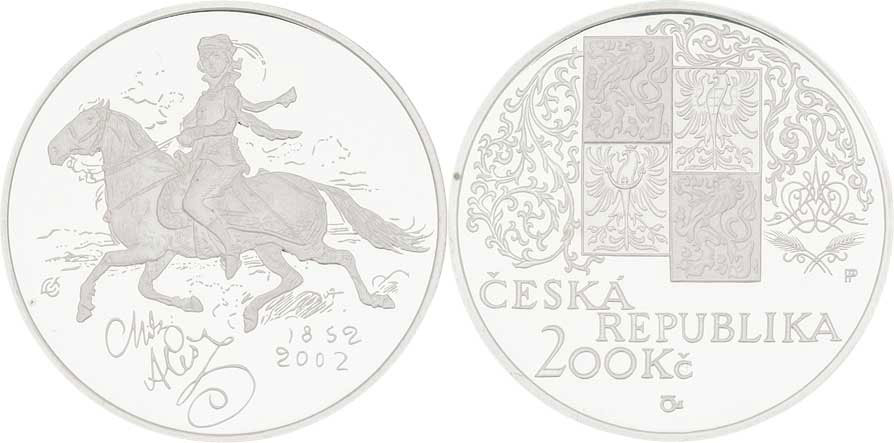 200 Kč 2002 - Mikoláš Aleš (Ag900, 13.0g, 5.000ks), kapsle, etue, karta