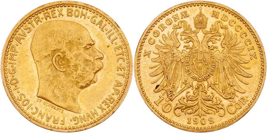 10 Koruna 1909 - Schwartz, 3.386g, dr.hr., nep.rysky