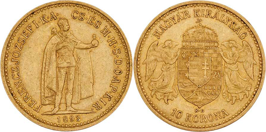10 Koruna 1893 KB, 3.378g, nep.hr., nep.rysky, patina