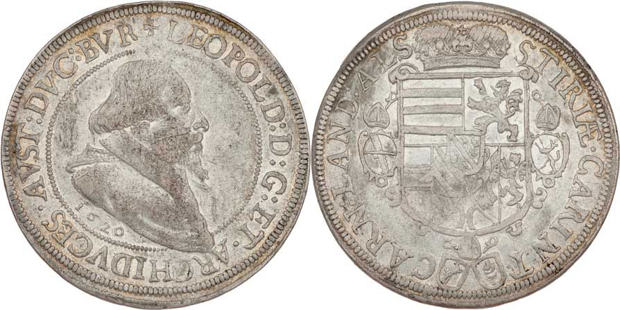 Tolar 1620, Ensisheim-Balde, M-A.109, KM.256.4, církevní šat, malý letopočet pod poprsím, čtyři malé znaky v reversu, 28.154g, nedor., patina