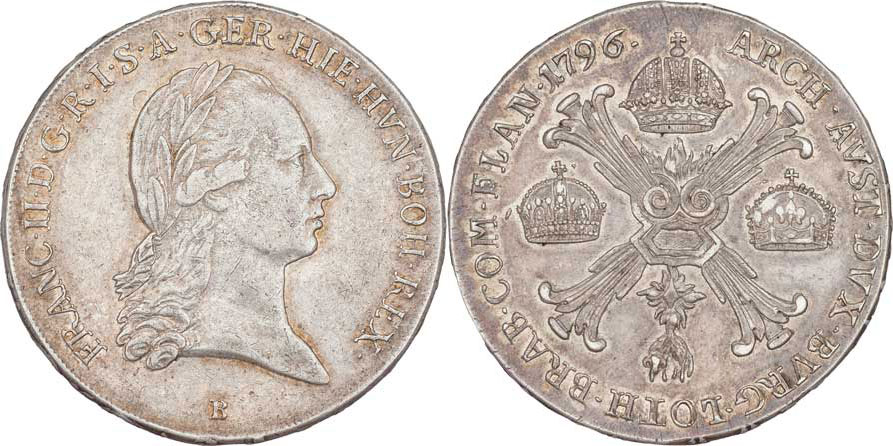 Tolar křížový 1796 B, Kremnica, 29.468g, nep.vada razidla, nep.hr., nep.rysky, pěkná patina