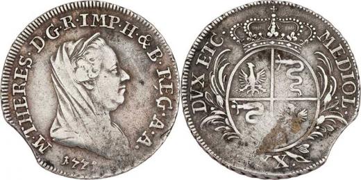 XX Soldi 1771, Milán, N.203, Cr.24.5, 3.635g, krajový střížek, nep.exc., nedor., skvrnky, patina R!