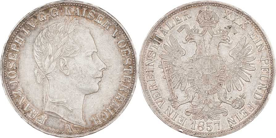 Tolar spolkový 1857 A, 18.465g, dr.hr., nep.rysky, pěkná patina R!