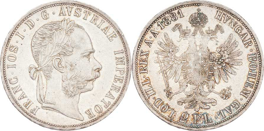 2 Zlatník 1881, 24.652g, nep.hr., nep.rysky, pěkná patina