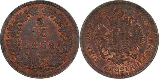 5/10 Krejcaru 1858 V, 1.726g, nep.nedor., krásná patina R!