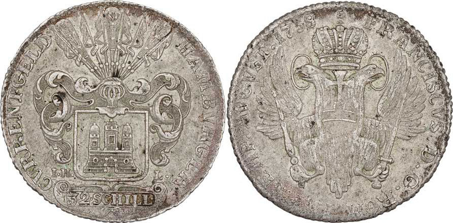 32 Schilling 1758 IHL, KM.184, 18.350g, nep.nedor., pěkná patina R!