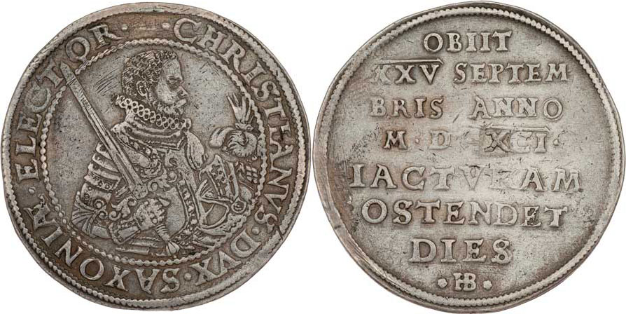 Tolar úmrtní 1591, Drážďany-Biener, Haupt.str.225 (tab.76/11), Keil.159, 28.771g, stopa po oušku, hlazen v ploše reversu, dr.rysky, pěkná patina