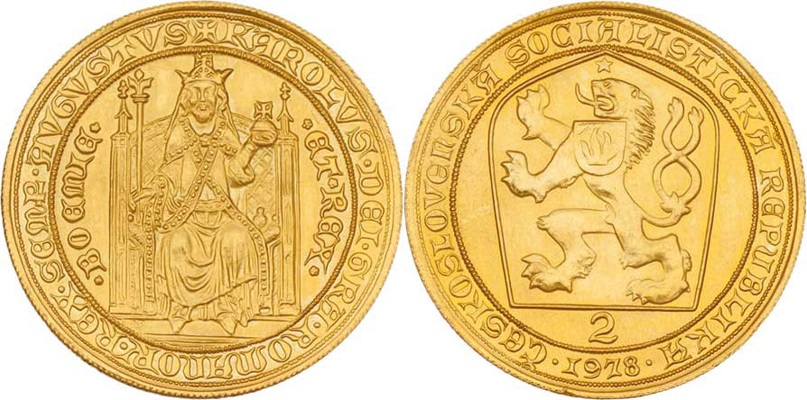 2 Dukát 1978 - Karel IV. (pouze 4898 ks), 6.980g, původní etue, dr.hr.