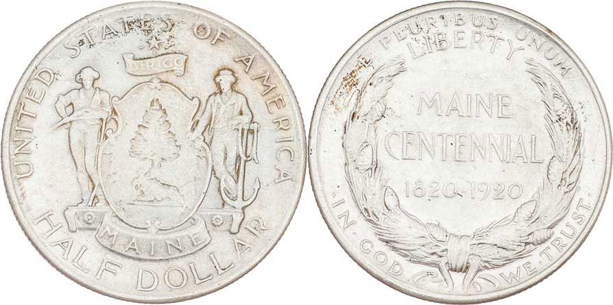 1/2 Dolar 1920 - Maine, KM.146 (pouze 50.028 ks), 12.490g, dr.hr., dr.rysky, patina R!