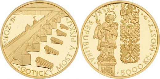 5000 Koruna (1/2 Unce) 2011 - Gotický most v Písku, KM.124 (Au999, 15.55g, 6.900ks), kapsle, etue, karta