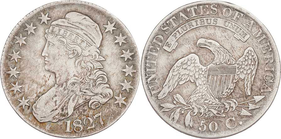 50 Cent 1827 - hlava Liberty, KM.37, 13.349g, nápis na hraně, nep.hr., nep.rysky, pěkná patina