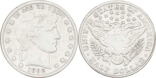 1/2 Dolar 1892 - Barber, KM.116, 12.488g, dr.hr., dr.rysky