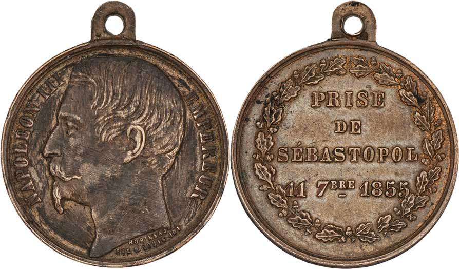AE pamětní medaile na obranu Sevastopolu 1855, Nesign., bronz 23 mm s původním ouškem, bez stuhy