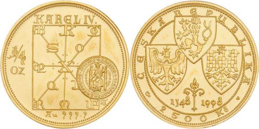 2500 Koruna (1/4 Unce) 1998 - Karel IV., KM.39 (Au999, 7.78g, 2.000ks), kapsle