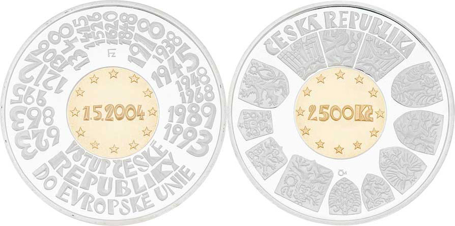 2500 Koruna 2004 - vstup do EU (bimetal 7.78g Au +