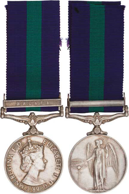 Elizabeth II. - AR Všeobecná medaile za dlouholetou službu 1953 - 1962, K-K.C47.5, Joslin.149.l, páska "MALAYA", hrana:"4044764 CPL.H.W.HAMLETT.R.A.F.", hr.