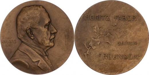 Moritz Faber 1837 / (1907) - poprsí zprava, nápis / ratolest a 3-řádkový nápis, Sign., bronz 60 mm, téměř