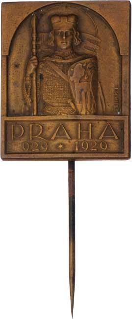 Praha - odznak na milenium svatého Václava, 929-1929, Stojící svatý Václav, nápis, Sign., masivní bronz 25x30 mm s jehlicí