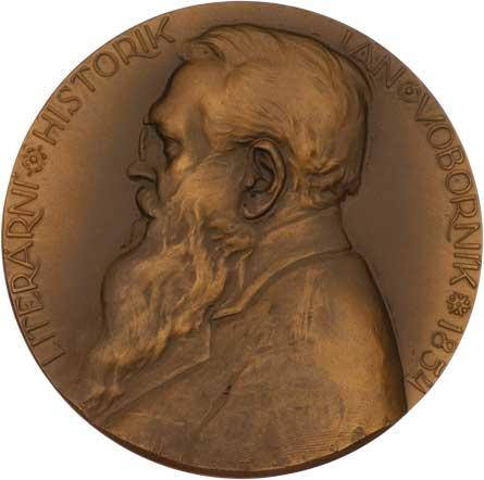 Jan Voborník - literární historik (nar.1854) 1933 - poprsí zleva, opis, Sign., patinovaný jednostranný bronz 70mm, pouze 55ks, skvrnka RR!