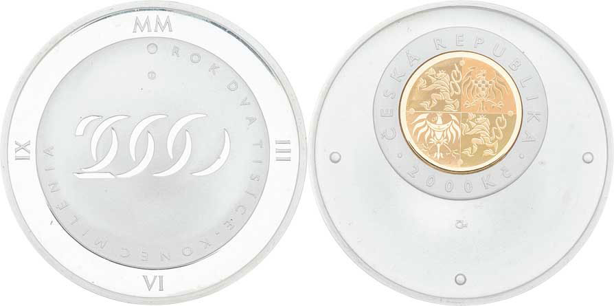 2000 Koruna 2000 - mileniová ražba s hologramem, (bimetal 3.11g Au + 31.10g Ag, 17.000 ks), kapsl etue, karta, avers v kvalitě "0", revers v kvalitě