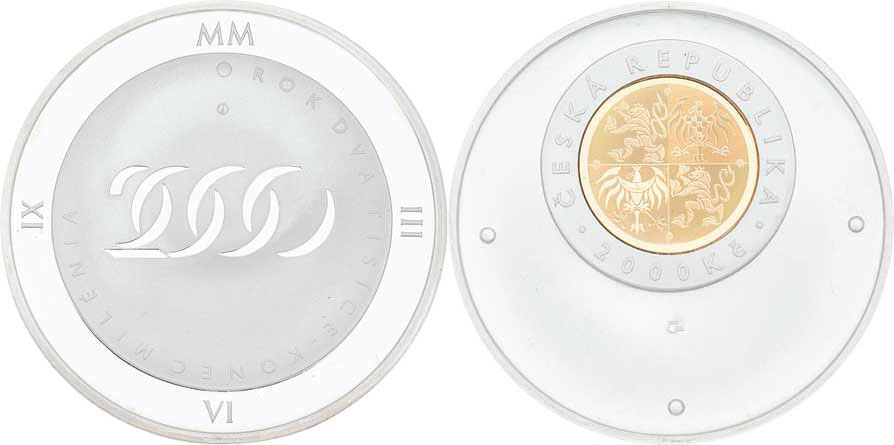 2000 Koruna 2000 - mileniová ražba s hologramem, (bimetal 3.11g Au + 31.10g Ag, 17.000 ks), kapsle, etue, karta, avers v kvalitě "0", revers v kvalitě