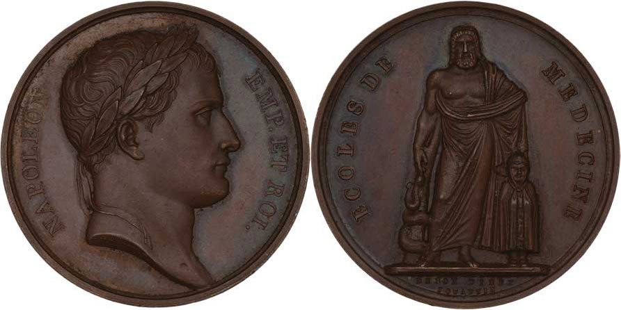 Andrieu, Jouannin a Denon - lékařská akademie 1805 - poprsí zprava, opis/ Aeskulap a student, opis, Sign., bronz 40mm, 37.328g, Zeitz.53, krásná patina