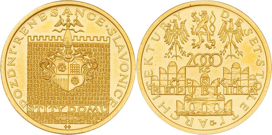 2000 Koruna 2003 - Štíty domů ve Slavonicích, KM.68 (Au999, 6.22g, 2.000ks)