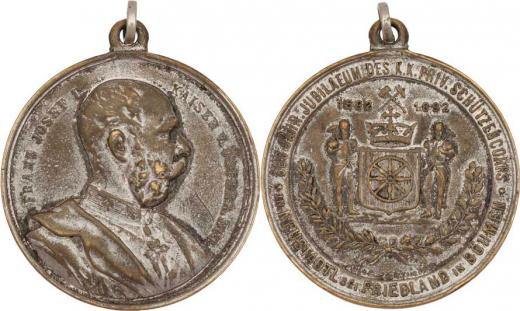 Nové Město pod Smrkem 1892 - 300 let spolku, poprsí císaře zprava, německý opis/ znak se štítonoši, opis, Sign.Christlbauer, postř.mosaz 37mm s původním ouškem