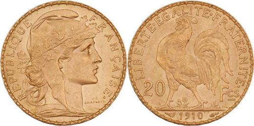 20 Frank 1910, KM.857, 6.445g, nep.rysky
