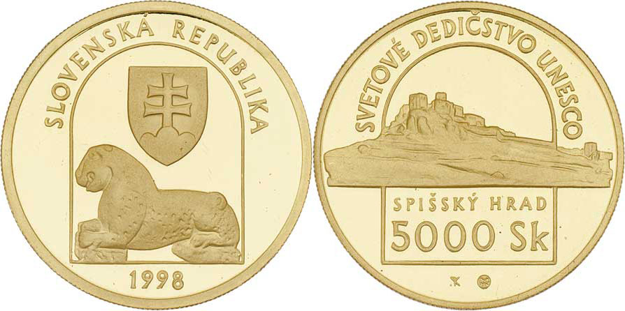 5000 Koruna 1998 - Spišský hrad - světové dědictví UNESCO, KM.46 (Au900, 9.50g, pouze 6.000ks), kapsle, etue, karta, přebal