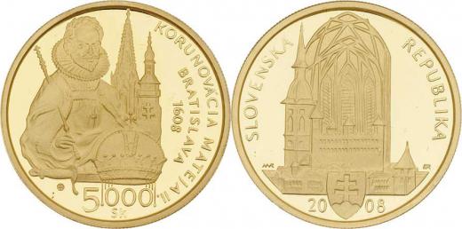 5000 Koruna 2008 - korunovace Matyáše II., KM.89 (Au900, 9.50g, pouze 4.500ks), kapsle, etue, karta, přebal
