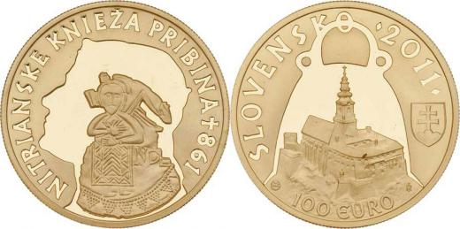 100 Euro 2011 - Kníže Pribina, KM.119 (Au900, 9.50g, pouze 7.000ks), kapsle, etue, karta, přebal