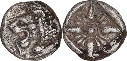 AR 1/12 Statéru, Lví hlava zleva / hvězdicovitý ornament v inkusním čtverci, podobná jako SG.3533, 1.035g, pěkná patina