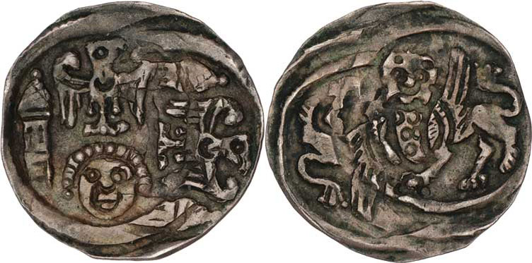 Denár, Ca.887, F.neuvádí - okřídlený lev zleva, 0.614g, zajímavý dvojráz, pěkná patina